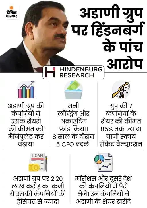 अमेरिकी शॉर्ट सेलर कंपनी हिंदनबर्ग ने पिछले साल 24 जनवरी को गौतम अडाणी पर शेयर मैनिपुलेशन और मनी लॉन्ड्रिंग जैसे आरोप लगाए थे, जिसके बाद कंपनी के शेयरों में भारी गिरावट देखने को मिली थी। केस की जांच के लिए सुप्रीम कोर्ट ने 6 सदस्यीय कमेटी बनाई थी। इसके अलावा मार्केट रेगुलेटर SEBI को भी जांच करने के लिए कहा था।