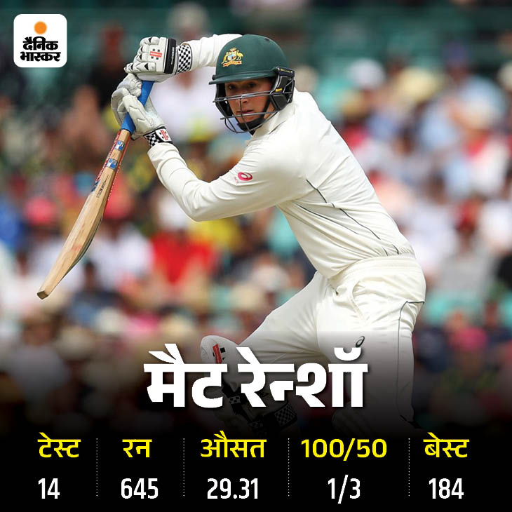 मैट रेन्शॉ ने ऑस्ट्रेलिया की टेस्ट टीम में डेविड वॉर्नर की जगह ली।