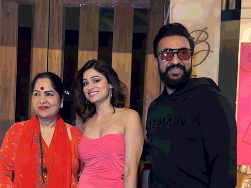 शमिता शेट्टी मां और राज कुंद्रा के साथ।
